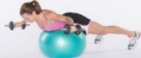 Reverse DB Fly Lay prone on a fitball with a light dumbbell on each side of the fitball. Keeping your arms straight, raise the dumbbells out to the sides up to body level. Variation: Raise one leg off the ground and repeat. Variation: Holding both dumbbells off the ground, raise only 1 at a time Variation: Position the dumbbells at the start with knuckles facing forwards. |