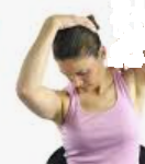 8. Neck / Shoulders Place your hand over your ear, rotate your head around 45 degrees, in the direction of your bent arm, and looking into your shoulder pit. Variation: rotate your head back towards the roof | ![]() | |